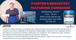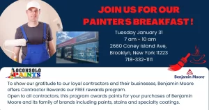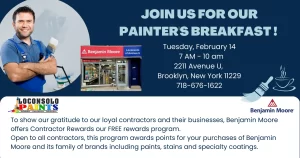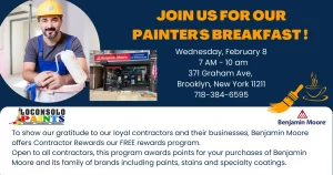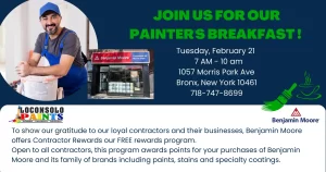 Join us for our Benjamin Moore Painter’s Breakfast. Discuss products & paint with a Benjamin Moore Rep. Sign up for our Contractor’s Rewards! Once enrolled in Contractor Rewards, your points can be redeemed for valuable merchandise for yourself, your employees, or your business. In addition, membership gives you access to exclusive offers, including sweepstakes giveaways […]