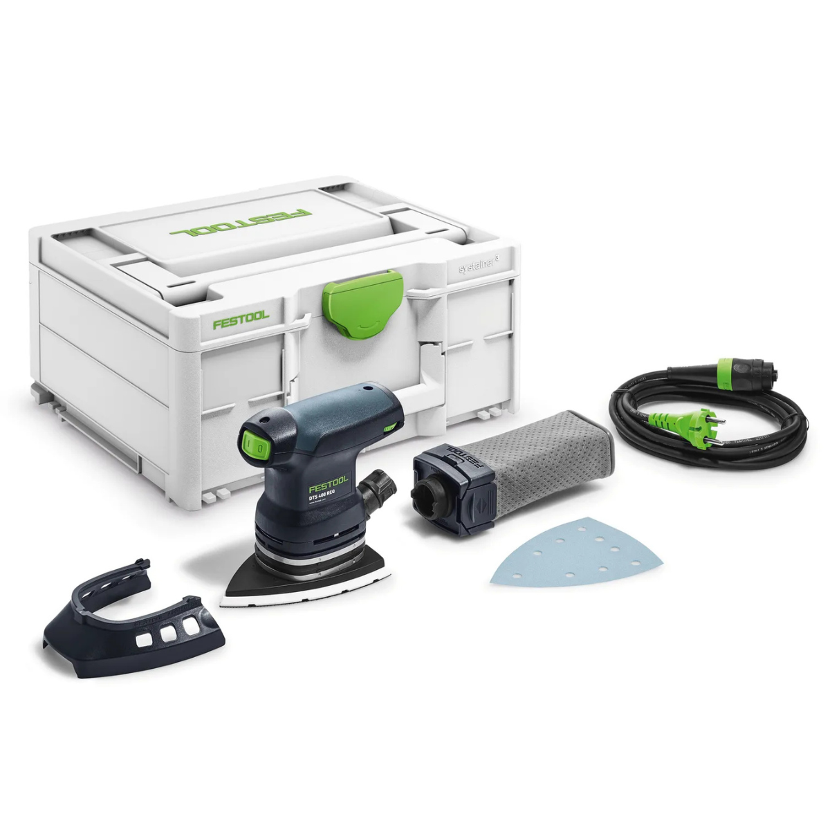 A great all around sander, the DTS 400 is designed for fine sanding small, angular surfaces that are difficult to reach. With a short 5/64″ (2 mm) stroke, this sander gives you a super-fine finished surface. Both compact and lightweight (2.4 lbs), the DTS 400 is the ideal sander for working on vertical and overhead surfaces. Step-less variable speed improves working results and the vibration-stop balancing makes your work less tiring.